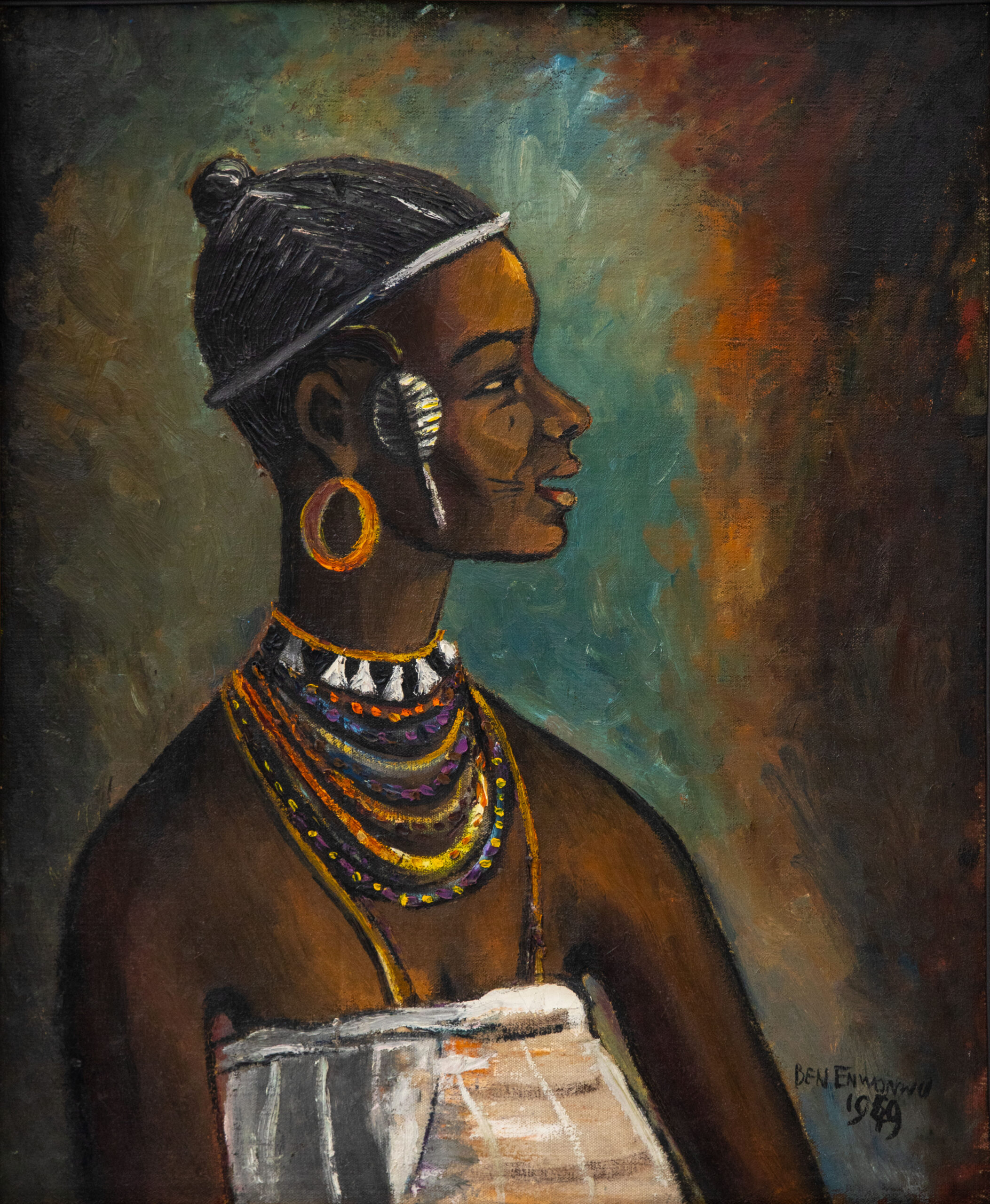 Sankofa: Constructing Modern African Art features more than 40 artworks by 30 artists from 11 countries, including Ethiopia, Ghana, Nigeria, Sierra Leone, and the United States. This exhibition captures how Modern African artists utilized the past (traditional values and cultural heritage of the pre-colonial era) to construct their versions of Modern African art. Although there were numerous beliefs on what a new African art aesthetic should do, see, and feel like, a common thread was a return to the sources, which was the act of reclaiming and rehabilitating African cultures desecrated by colonization. Artists reclaimed the past for the future of African art by utilizing Indigenous art forms to construct art for the age of African independence and globalization. They also presented the unique beauty of the African landscape and its numerous ethnic cultures, birthing new artistic identities formed by deeper connections to their own or foreign cultural heritage.